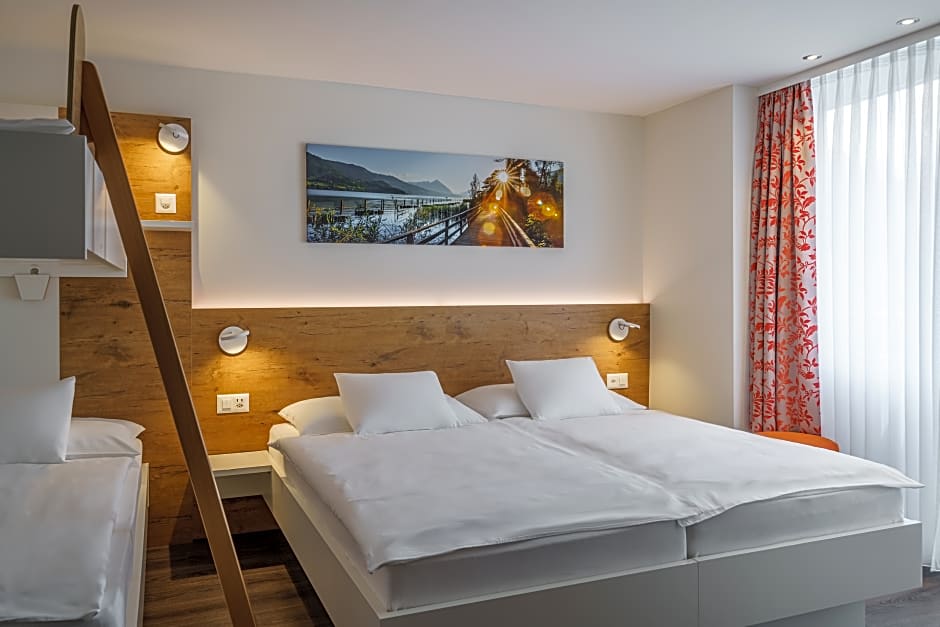 Superior Quadruple Room, Mountain View, Mountainside (2 Twin Beds and 1 Twin Bunk Bed) is 205 square feet and includes either 2 single beds 80-130 width or bunk beds plus desk.